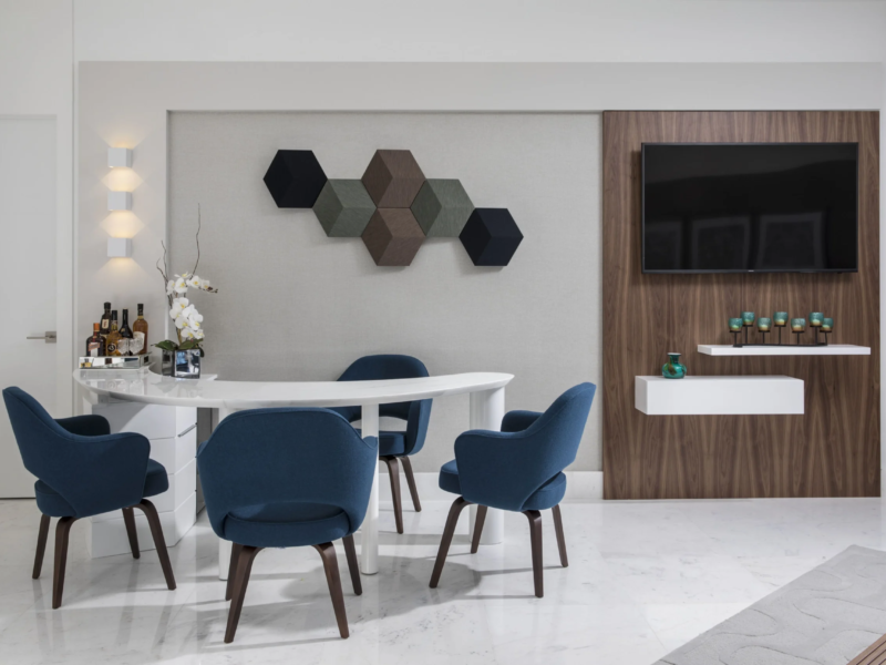 An exciting transformation. Silvana Borges implemented mirror and lighting concepts that allow the bedroom to enjoy natural light while making the dining room look more spacious. She remodeled the den into a charming bedroom. The space now caters to everyone and is comfortable, welcoming, functional and practical.